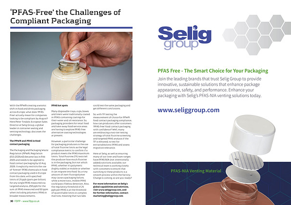 With the PPWR creating a seismic shift in food and drink packaging across Europe, what does‘ PFAS- Free’ actually mean for companies looking to be compliant by August? Here Peter Tindale, European Sales Director at Selig Group, a global leader in container sealing and venting technology, discusses the challenges.