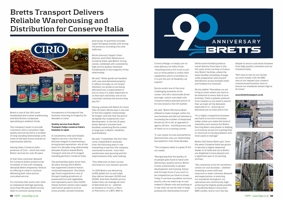 “ Recognising that the quality of its people goes hand in hand with delivering a quality service, Bretts invests substantially in people development and training. Simon and his team know if you want to be competitive you have to invest. Today if we have a problem we know exactly who we need to go to and indeed it’ s Bretts who are pushing us to see what we can do next to keep pushing the relationship forward.”