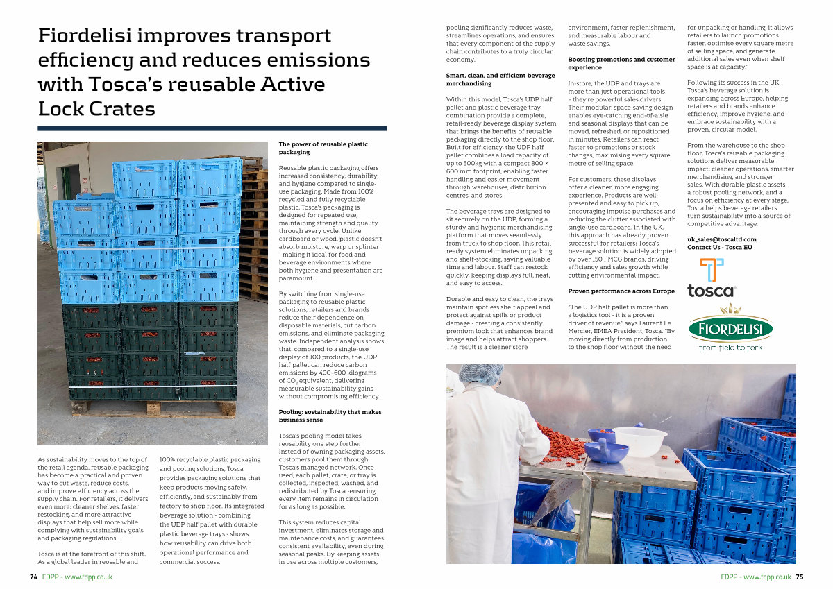 “ The UDP half pallet is more than a logistics tool- it is a proven driver of revenue,” says Laurent Le Mercier, EMEA President, Tosca.“ By moving directly from production to the shop floor without the need for unpacking or handling, it allows retailers to launch promotions faster, optimise every square metre of selling space, and generate additional sales even when shelf space is at capacity.’’