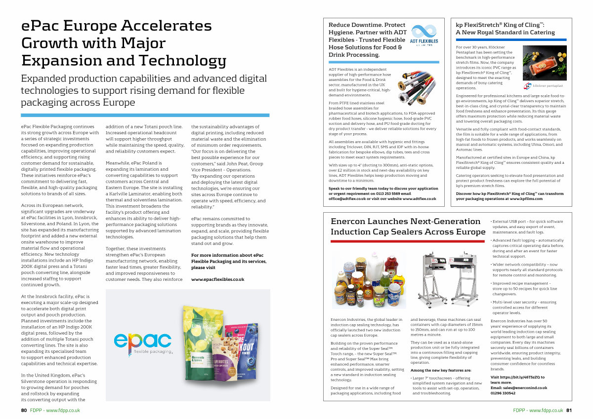 Together, these investments strengthen ePac’ s European manufacturing network, enabling faster lead times, greater flexibility, and improved responsiveness to customer needs. They also reinforce the sustainability advantages of digital printing, including reduced material waste and the elimination of minimum order requirements.“ Our focus is on delivering the best possible experience for our customers,” said John Peat, Group Vice President – Operations.“ By expanding our operations and deploying the latest digital technologies, we’ re ensuring our sites across Europe continue to operate with speed, efficiency, and reliability.”