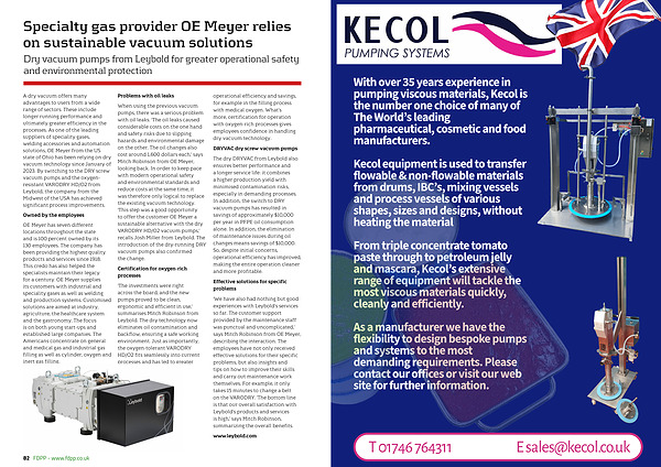 ‘ The investments were right across the board, and the new pumps proved to be clean, ergonomic and efficient in use,’ summarises Mitch Robinson from Leybold. The dry technology now eliminates oil contamination and backflow, ensuring a safe working environment. Just as importantly, the oxygen-tolerant VARODRY HD / O2 fits seamlessly into current processes and has led to greater operational efficiency and savings, for example in the filling process with medical oxygen. What’ s more, certification for operation with oxygen-rich processes gives employees confidence in handling dry vacuum technology.