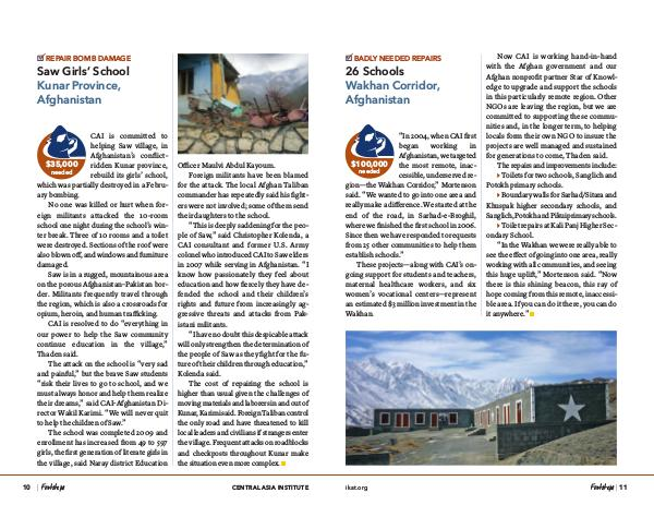 CAI is committed to helping Saw village, in Afghanistan’ s conflictridden Kunar province, rebuild its girls’ school, which was partially destroyed in a February bombing.