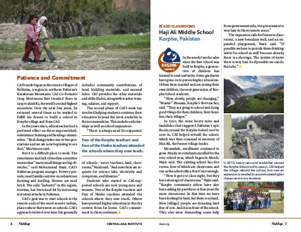 In 2010, the same heavy rains and landslides that triggered Pakistan’ s epic floods caused the Korphe School roof to cave in. CAI helped rebuild the school, which was then renamed in memory of Haji Ali, the former village leader.