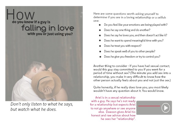 Ariel is in a sexual relationship with a guy. He says he's not ready for a relationship but expects Ariel to not go anywhere or see anyone else. Dawson gives Ariel his honest and raw advice about how he sees her "relationship".
