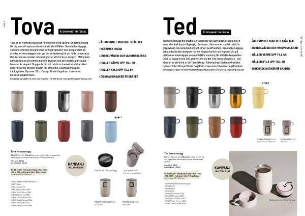 Tova är en framtida klassiker för dig som är på språng. En termosmugg för dig som vill njuta av din dryck vid alla tillfällen. Den dubbelväggiga, vakuumisolerade designen har ett högkvalitativt tunt kopparskikt på utsidan av innerväggen som ger bättre isolering för att hålla temperatur. Den keramiska insidan och möjligheten att dricka ur koppen i 360 grader ger känslan av att komma närmre drycken och den perfekta drickupplevelsen är skapad. Muggen är lätt att ta isär och enkel att diska vilket underlättar för drycker såsom tex smoothie. Diskmaskinssäker. Läckagsäker. Rymmer 32 cl. Design Studio Sagaform. Levereras i klassisk Sagaformbox.