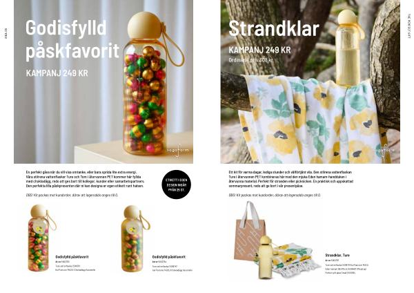 En perfekt gåva när du vill visa omtanke, eller bara sprida lite extra energi. Våra stilrena vattenflaskor Ture och Tom i återvunnen PET kommer här fyllda med chokladägg, redo att ges bort till kollegor, kunder eller samarbetspartners. Den perfekta lilla påskpresenten där ni kan designa er egen etikett runt halsen.