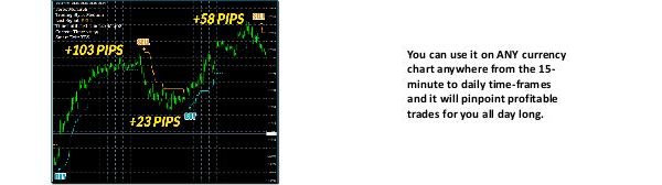 You can use it on ANY currency chart anywhere from the 15- minute to daily time-frames and it will pinpoint profitable trades for you all day long.