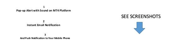 1 Pop-up Alert with Sound on MT4 Platform 2 Instant Email Notification 3 And Push Notification to Your Mobile Phone