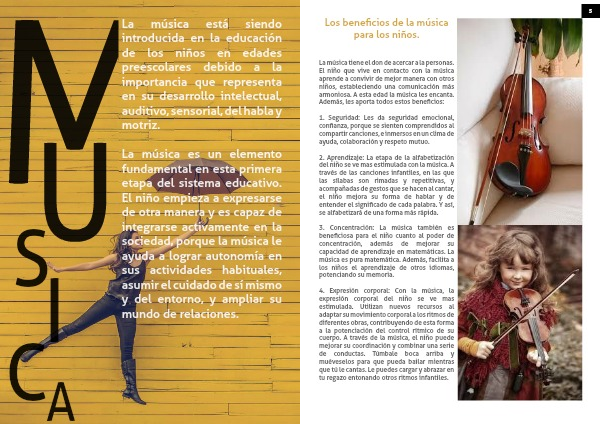 2. Aprendizaje: La etapa de la alfabetización del niño se ve mas estimulada con la música. A través de las canciones infantiles, en las que las sílabas son rimadas y repetitivas, y acompañadas de gestos que se hacen al cantar, el niño mejora su forma de hablar y de entender el significado de cada palabra. Y así, se alfabetizará de una forma más rápida.