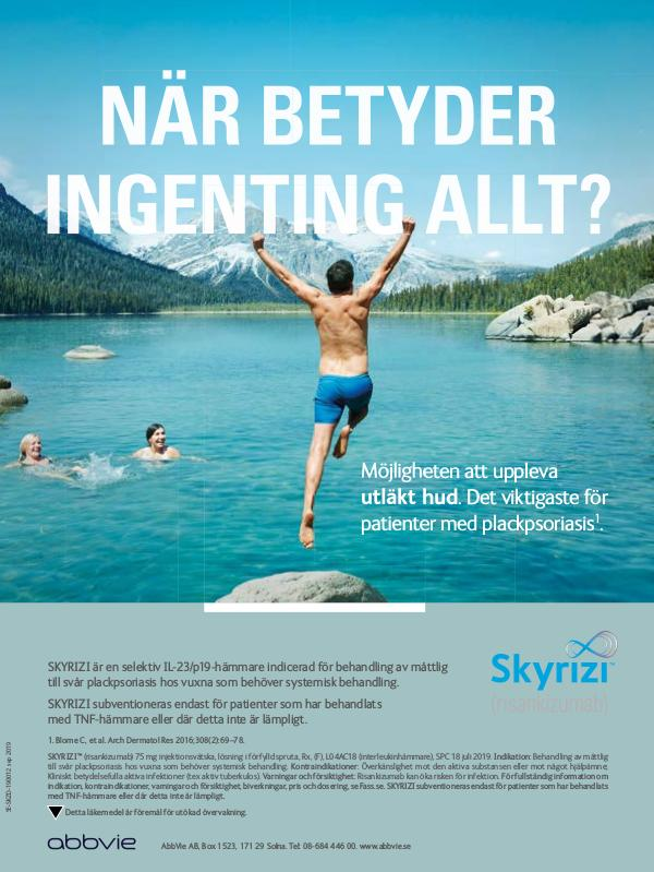 SKYRIZI™ (risankizumab) 75 mg injektionsvätska, lösning i förfylld spruta, Rx, (F), L04AC18 (interleukinhämmare), SPC 18 juli 2019. Indikation: Behandling av måttlig