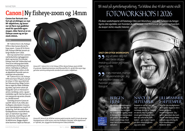 Canon har fortsatt stor fart på utviklingen av nye RF-objektiver, og lanserer nå flere nye godbiter med litt spesielle egenskaper. Aller først ut er en fisheye-zoom og en lyssterk 14mm.