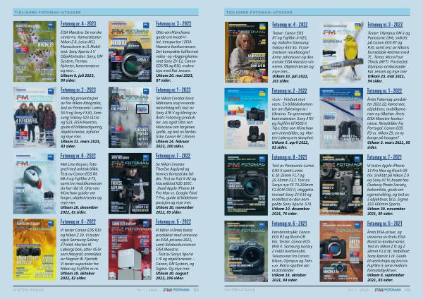 Vinterlig presentasjon av fire Nikon-fotografer, test av Panasonic Lumix S5 II og Sony FX30, Samsung Galaxy S23 ULtra og S23, EISA Maestro, guide til bilderedigering, objektivtester, nyheter og mye mer. Utkom 31. mars 2023, 83 sider.