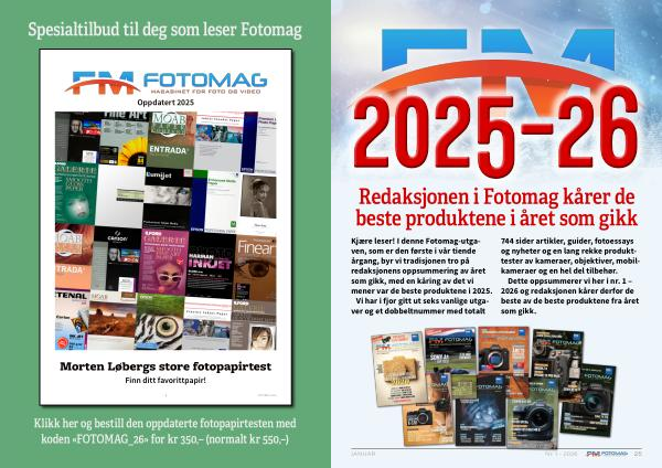 Klikk her og bestill den oppdaterte fotopapirtesten med koden « FOTOMAG _ 26 24 » for kr 350 225,–( normalt kr 450 550,–)