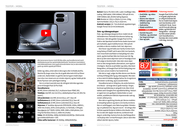 Google Pixel 10 Pro Fold er et godt valg hvis du er villig til å betale litt for en mobil med skjem som kan brettes ut til‘ nettbrett’-bruk. Suveren til å se på video og bilder, og helt OK til å fotografere – så lenge du ikke satser på den som hovedkamera. Kanskje den mest solide i sitt slag, men dyr.