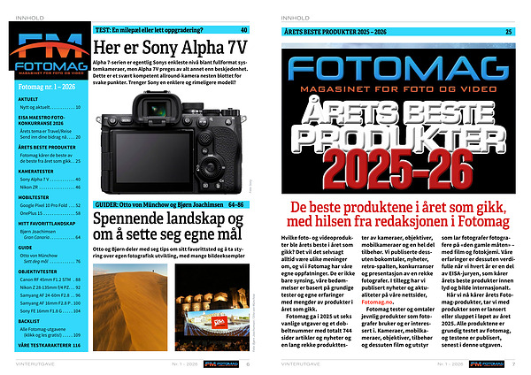 Når vi nå kårer årets Fotomag-produkter, tar vi med produkter som er lansert eller sluppet i løpet av året 2025. Alle produktene er grundig testet av Fotomag, og testene er publisert, senest i denne utgaven.