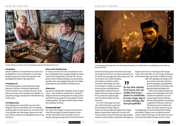deg til svart-hvitt, kun naturlig lys eller én type motiv. Ved å sette slike rammer tvinger du deg selv til å finne løsninger og visuelle uttrykk du kanskje aldri ville oppdaget uten begrensningene. Den kunstneriske utfordringen blir tydeligere, og arbeidet får en indre konsistens som ofte er lett gjenkjennelig i porteføljen din.