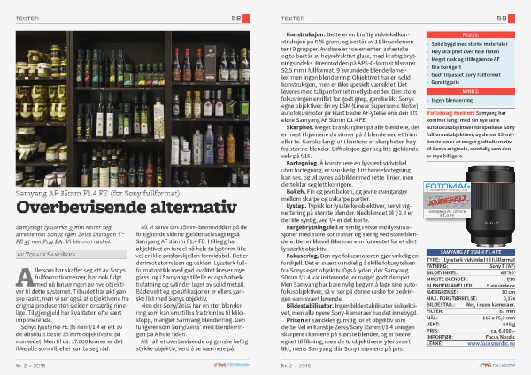 Fotomag mener: Samyang har kommet langt med sin nye serie autofokusobjektiver for speilløse Sony fullformatobjektiver, og denne 35-millimeteren er et meget godt alternativ til Sonys originale, samtidig som den er mye billigere.