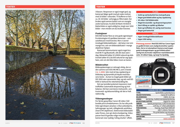 Fotomag mener : Med EOS 90D har Canon laget en godbit til dem som stadig foretrekker speilrefleks . Det er et ukomplisert kamera med meget gode bruksegenskaper og god bildekvalitet – særlig hvis du bruker objektiver med bildestabilisator . Et sikkert kjøp , og langt fra kjedelig .