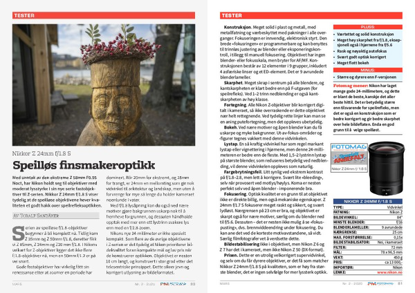 tiver til Z-serien. Nikkor Z 24mm f/1.8 S viser