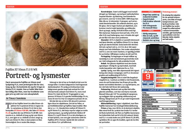 Til nå har Fujifilm levert tre ulike 50mm-objektiver for X-systemet ( 4 hvis vi regner de to variantene av 50mm F1.2 ): Det er den kompakte XF 50mm F2R WR , den lekre XF 56mm F1.2R og altså den nye XF50mm F1.0R WR . Sistnevnte er ca . dobbelt så tung og dyr som 56mm F1.2 , som igjen er ca . dobbelt så stort , tungt og dyrt som 50mm F2 . Men vi skal avsløre en liten hemmelighet : De er nesten like skarpe .
