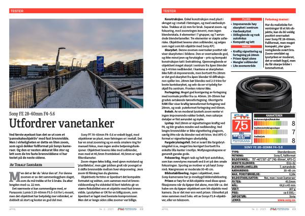 Har du realistiske forventninger til et kit-objektiv , kan du bli veldig positivt overrasket over Sony FE 28-60mm . Fullformat , men meget kompakt , yter gjennomgående svært bra . Zoom-området og lysstyrken er moderat , det er enkelt bygd , men du får skarpe bilder i lommeformat .