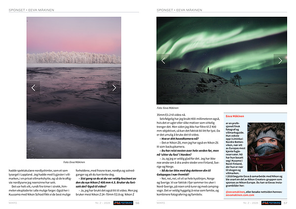 Det var helt vilt, rundt fire timer i strekk, himmelen eksploderte i alle mulige farger. Også her i Kuusamo med Nikon School fikk vi de best mulige forholdene, med frosne trær, nordlys og solnedganger og alt du kan tenke deg.