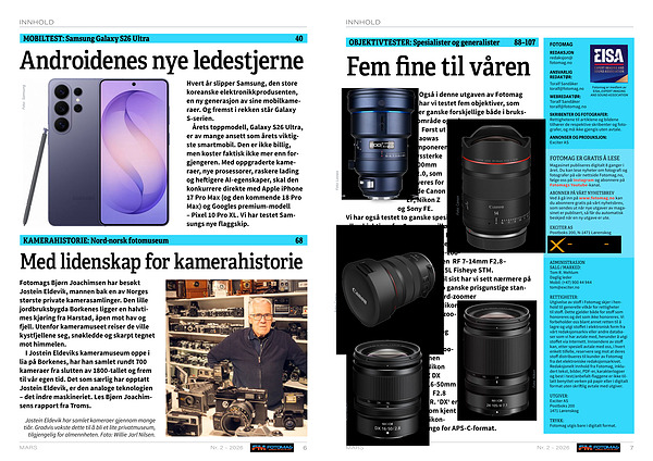 Fotomags Bjørn Joachimsen har besøkt Jostein Eldevik, mannen bak en av Norges største private kamerasamlinger. Den lille jordbruksbygda Borkenes ligger en halvtimes kjøring fra Harstad, åpen mot hav og fjell. Utenfor kameramuseet reiser de ville kystfjellene seg, snøkledde og skarpt tegnet mot himmelen.