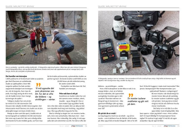 Øv på det du er svak i La meg begynne med noe så enkelt – og så krevende – som å definere hva du faktisk vil bli bedre på. Ikke « jeg vil bli en bedre fotograf ». Det er for diffust. Vil du bli tryggere i møte med mennesker? Mer presis i komposisjon? Mer kompromissløs i prosjektarbeid? Raskere i redigeringen? Bli mer intuitiv i din tilnærming? En mester trener ikke på alt samtidig. En mester isolerer svakheter og går rett på dem. Som jeg skrev innledningsvis må du selv definere hva du mener med bedre.