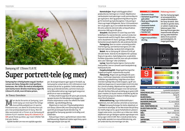 Samyang har virkelig kastet seg på i konkurransen om Sony-fotografer med speilløse kameraer . Her stiller de med et teleobjektiv som konkurrerer direkte med Sonys egen FE 135mm F1.8 GM , men til halve prisen .