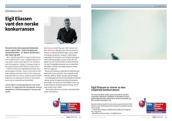 Eliassens bildeserie går nå til den internasjonale finalen i EISA Maestro 2024 . De blir også med i kåringen av publikumsprisen på Facebook .