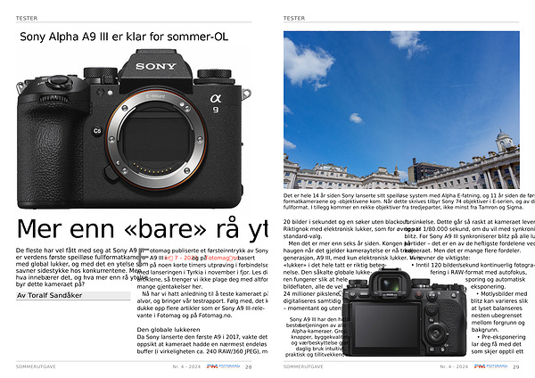 Sony A9 III har den hittil beste betjeningen av alle Alpha-kameraer . Grep , knapper , byggekvalitet og værbeskyttelse gjør daglig bruk intuitivt , praktisk og tillitvekkende . forsinkelse . Dette går så raskt at kameraet leverer opp til 1 / 80.000 sekund , om du vil med synkronisert blitz . For Sony A9 III synkroniserer blitz på alle lukkertider – det er en av de heftigste fordelene ved kameraet . Men det er mange flere fordeler .