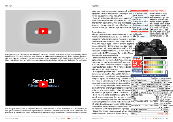 Med global lukker får vi et par fordeler også for video , selv om vi ikke tror mange vil skaffe seg en Sony A9 III bare for videofilming . Forvrengte motiver som følge av at lukkergardinen beveger seg , er ikke lenger noe problem . Både bevegelige motiver og kameraets egenbevegelse er « sikre » mot geometrisk forvrengning . Men LED-lys kan fremdeles føre til en viss « blunking », hvis bildefrekvensen synkroniserer dårlig med lyset , og du bruker for kort lukkertid .