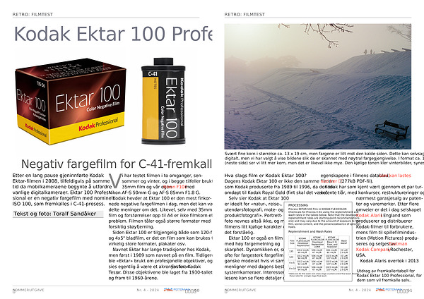 Ektar 100 er også en film med høy fargemetning og skarphet . Dynamikken er , som ofte for fargesterk fargefilm , ganske moderat hvis vi sammenligner med dagens beste systemkameraer . Interesserte lesere kan se flere detaljer om