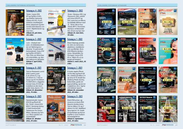 Årets EISA-priser , og vinnerne av årets EISA Maestro-konkurranse . Test av Nikon Z fc og Z 28mm F2.8 SE . Mobiltest : Sony Xperia 1 III . Guide til workshops og test av Fujifilm G-serie mellomformatobjektiver . Utkom 8 . september 2021 , 85 sider .