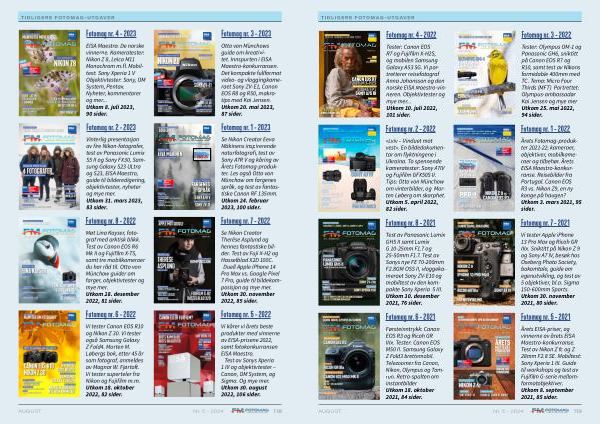 Årets EISA-priser , og vinnerne av årets EISA Maestro-konkurranse . Test av Nikon Z fc og Z 28mm F2.8 SE . Mobiltest : Sony Xperia 1 III . Guide til workshops og test av Fujifilm G-serie mellomformatobjektiver . Utkom 8 . september 2021 , 85 sider .