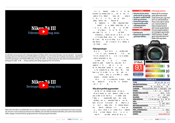 Nikon Z6 III er et kompakt alternativ til Z8 med lavere pris , og med 95 % av alle fordelene . Pluss noen det er alene om . I korte trekk har Nikon implementert det meste og det beste fra sine toppmodeller i et rimeligere og mindre 24MP kamera . Et gedigent hybridkamera for både stills og video .