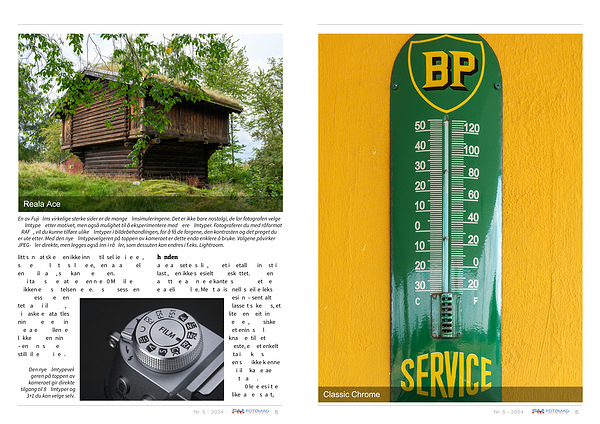 En av Fujifilms virkelige sterke sider er de mange filmsimuleringene . Det er ikke bare nostalgi , de lar fotografen velge « filmtype » etter motivet , men også mulighet til å eksperimentere med flere filmtyper . Fotograferer du med råformat ( RAF ), vil du kunne tilføre ulike filmtyper i bildebehandlingen , for å få de fargene , den kontrasten og det preget du er ute etter . Med den nye filmtypevelgeren på toppen av kameraet er dette enda enklere å bruke . Valgene påvirker JPEG-filer direkte , men legges også inn i råfiler , som dessuten kan endres i f . eks . Lightroom .