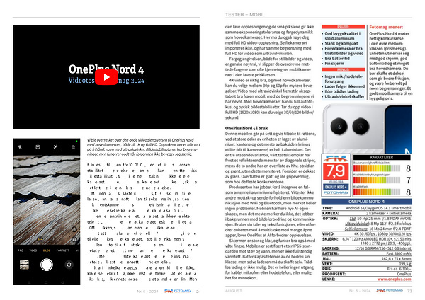 OnePlus Nord 4 møter heftig konkurranse i den øvre mellomklassen ( prismessig ). Enheten utmerker seg med god skjerm , god batteritid og et meget bra hovedkamera . Du bør skaffe et deksel som gir bedre friksjon , og være forberedt på noen begrensninger . Et godt mobilkamera til en hyggelig pris .