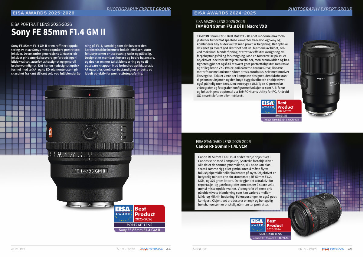 Canon RF 50mm F1.4L VCM er det tredje objektivet i Canons serie med kompakte, lyssterke fastobjektiver. Alle deler de samme ytre målene, slik at de kan plasseres i samme rigg eller gimbal uten å måtte flytte fokushjelpemidler eller balansere på nytt. Objektivet er betydelig mindre enn sin storesøster, RF 50mm F1.2L USM, og 370 gram lettere. Dette gjør det attraktivt for reportasje- og gatefotografer som ønsker å spare vekt uten å miste optisk kvalitet. Videografer vil sette pris på objektivets blenderring som kan varieres mellom klikk- og klikkfri betjening. Fokuspustingen er også godt korrigert. Objektivet produserer en myk og behagelig bokeh, noe som er ønskelig når man tar portretter.