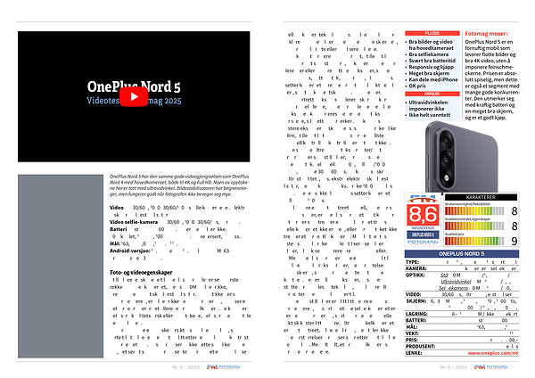 Foto- og videoegenskaper Stillbildeegenskapene til OnePlus Nord 5 lener seg i første rekke på hovedkameraet, med sin 50MP bildebrikke, 24 mm brennvidde og optisk bildestabilisator. Om optikken er som på forgjengeren, er bildebrikken en oppgradering, og vi ser en del forbedringer fra et allerede bra mobilkamera. De kommer delvis fra kvalitetsforskjeller i opptakene, delvis fra den digitale behandlingen.