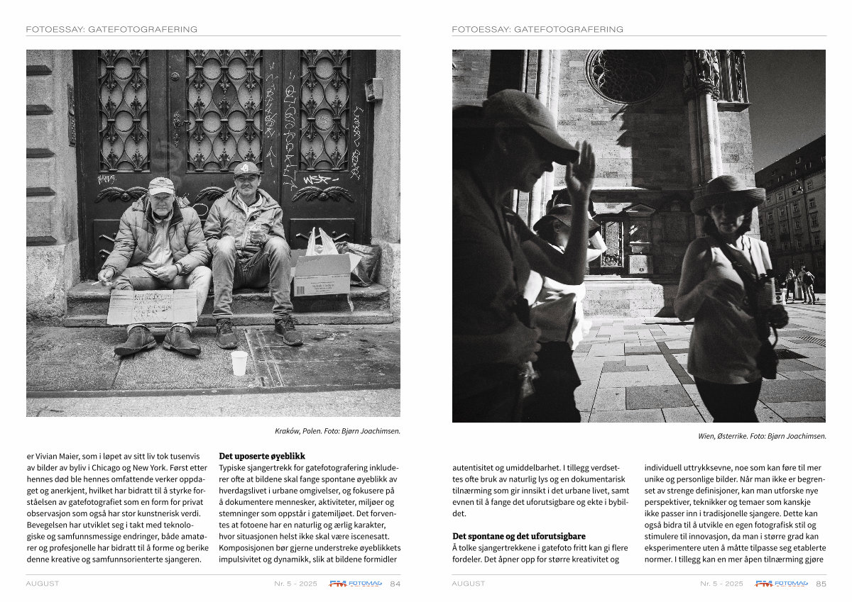 Wien, Østerrike. Foto: Bjørn Joachimsen. autentisitet og umiddelbarhet. I tillegg verdsettes ofte bruk av naturlig lys og en dokumentarisk tilnærming som gir innsikt i det urbane livet, samt evnen til å fange det uforutsigbare og ekte i bybildet.