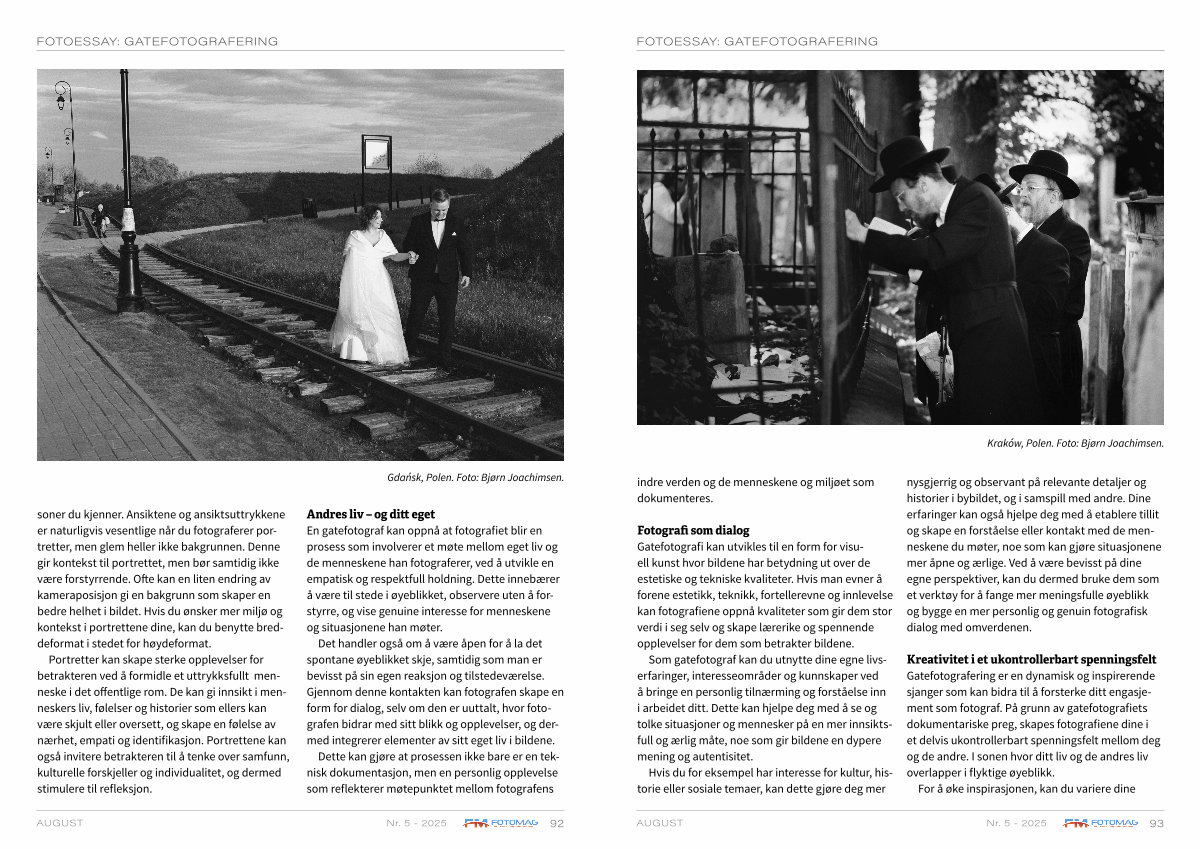 Andres liv – og ditt eget En gatefotograf kan oppnå at fotografiet blir en prosess som involverer et møte mellom eget liv og de menneskene han fotograferer, ved å utvikle en empatisk og respektfull holdning. Dette innebærer å være til stede i øyeblikket, observere uten å forstyrre, og vise genuine interesse for menneskene og situasjonene han møter.