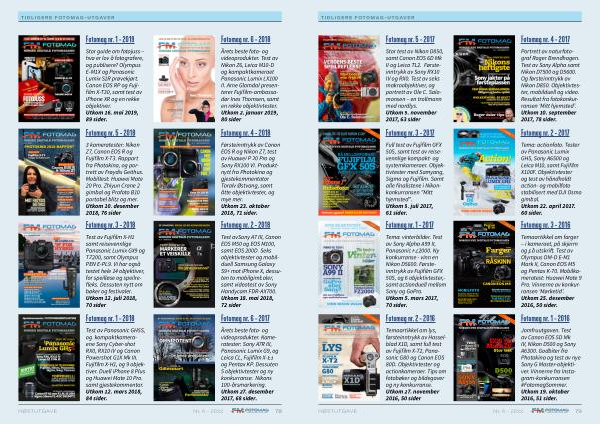 Jomfruutgaven . Test av Canon EOS 5D Mk IV , Nikon D500 og Sony A6300 . Godbiter fra Photokina og test av nye Sony G Master-objektiver . Vinnerne fra Instagram-konkurransen # FotomagSommer . Utkom 19 . oktober 2016 , 51 sider .