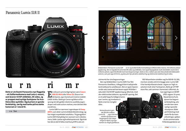 ISO-følsomheten strekker seg fra ISO 80 – 51.200, men kan utvides ett trinn begge veier. Lumix S1R II har kanskje klassens beste utgave av‘ high-resolution multi-shot’-funksjonen, Dette gir 177 MP store filer, satt sammen i kameraet i råformat, du kan også lagre en 88 MP JPEG-utgave. Vi synes likevel denne funksjonen har begrenset betydning, selv om den kan være nyttig i spesielle situasjoner. Både på frihånd og med stativ får du noen utfordringer, sjekker du de sammensatte frihåndsopptakene ser