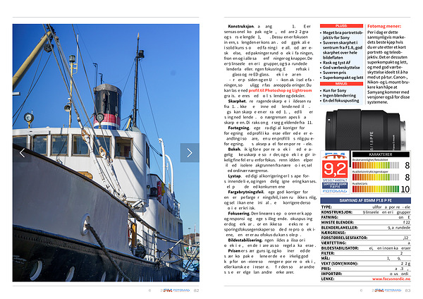 Per i dag er dette sannsynligvis markedets beste kjøp hvis du er ute etter et kort portrett- og teleobjektiv. Det er dessuten superkompakt og lett, og med god værbeskyttelse ideelt til å ha med ut på tur. Canon-, Nikon- og L-mount-brukere kan håpe at Samyang kommer med versjoner også for disse systemene.