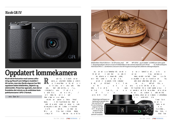 Ricoh GR IV fortsetter med samme utforming og filosofi som tidligere modeller i GR-serien, men den fjerde utgaven har fått oppdatert både bildebrikke, objektiv og elektronikk. Prisen har også økt, men det er fremdeles det minste av de ambisiøse kompaktkameraene i APS-C-format.