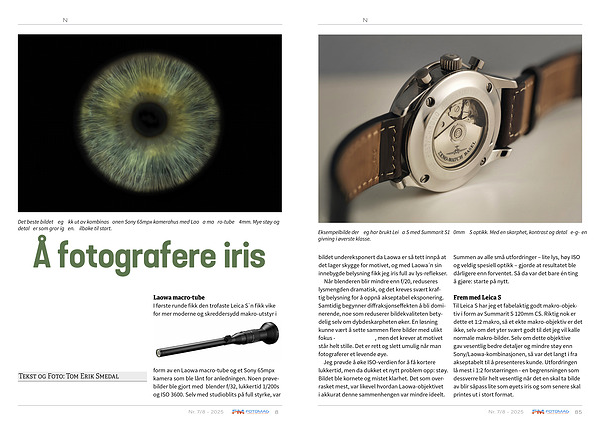 Gjennom mangeårig samarbeid med Veggbilder. no kom det en forespørsel fra en øyelege – var det mulig å få tatt makrobilde av øyets iris på en mørk bakgrunn og som var tilstrekkelig kvalitet til å kunne printes ut i veggbilde-størrelse? Resultatet ble et unikt motiv, hvor øyets naturlige mønstre og farger fremstår nesten som et eget univers. Veien dit ble imidlertid lang og kronglete.