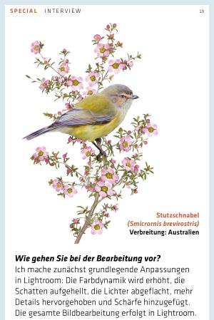 „ Ich nenne es hyperrealistische Kunst – in freier Wildbahn sieht der Vogel längst nicht immer so gut aus.“ falschen Einstellungen zu haben. Und wenn der Vogel wieder weg ist, hat man die Chance verpasst.