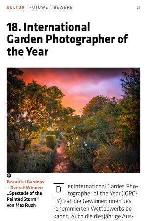Der IGPOTY ist einer der weltweit angesehensten Wettbewerbe für Garten-, Flora-, Fauna- und Pilzfotografie. www. igpoty. com grenzenlosen Möglichkeiten der Garten-, Flora- und Faunafotografie. Wir zeigen dir hier nur die Sieger: innen des Wettbewerbs – besuche aber unbedingt www. igpoty. com, um die gesamte Vielfalt der ausgezeichneten Werke zu sehen.