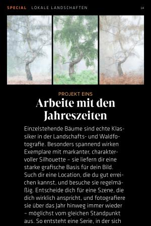 Einzelstehende Bäume sind echte Klassiker in der Landschafts- und Waldfotografie. Besonders spannend wirken Exemplare mit markanter, charaktervoller Silhouette – sie liefern dir eine starke grafische Basis für dein Bild. Such dir eine Location, die du gut erreichen kannst, und besuche sie regelmäßig. Entscheide dich für eine Szene, die dich wirklich anspricht, und fotografiere sie über das Jahr hinweg immer wieder – möglichst vom gleichen Standpunkt aus. So entsteht eine Serie, in der sich ausschließlich die Jahreszeiten verändern. Für eine konsistente Bildwirkung behältst du – mit Ausnahme der Verschlusszeit – alle Kameraeinstellungen bei. Achte außerdem genau auf Wetter und Lichtstimmung, denn sie prägen den Charakter jeder Aufnahme entscheidend. Das Ziel dieser Serie: den Baum in allen vier Jahreszeiten festhalten – als finalen Abschluss im Schnee.